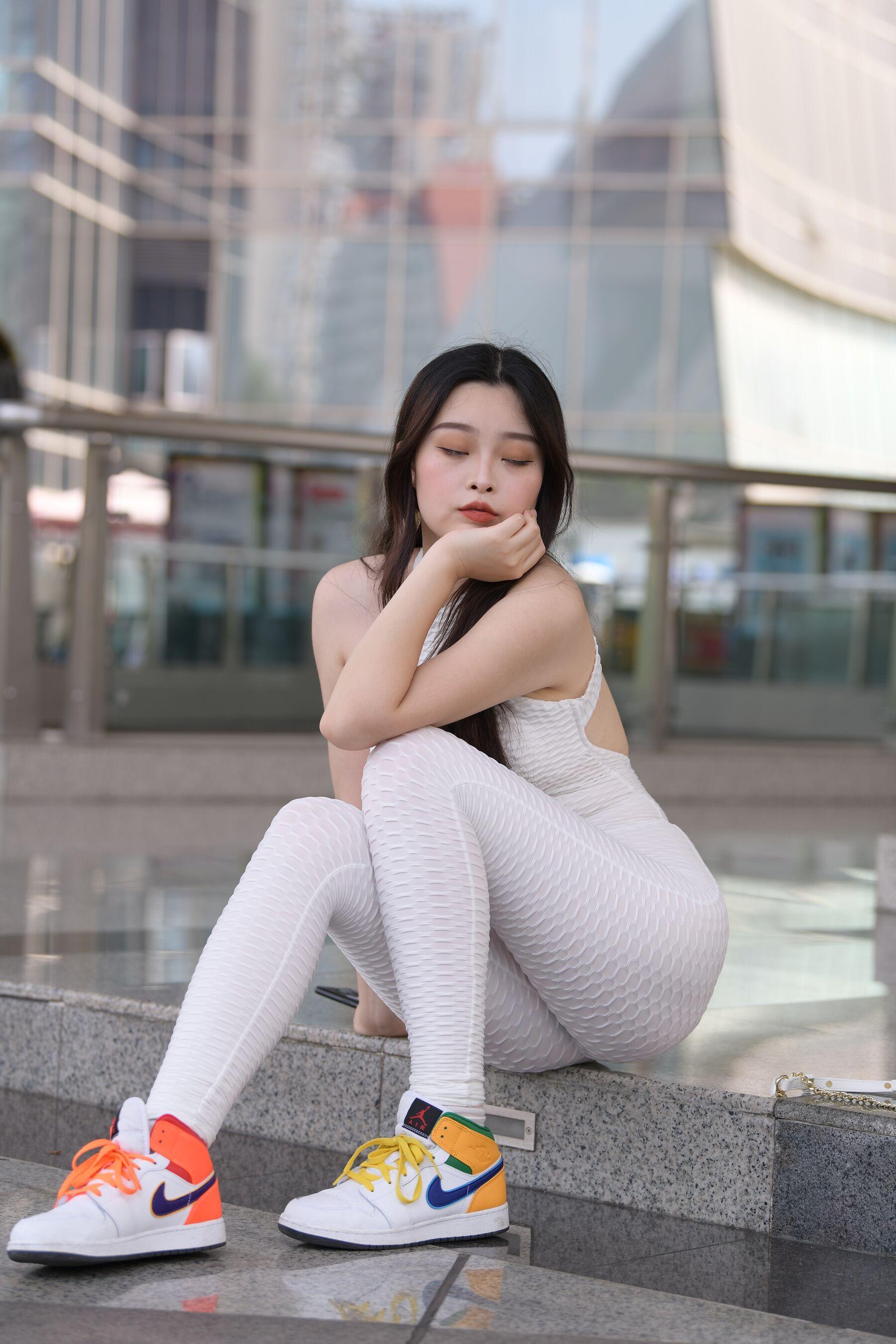 国模套图 白色瑜伽裤