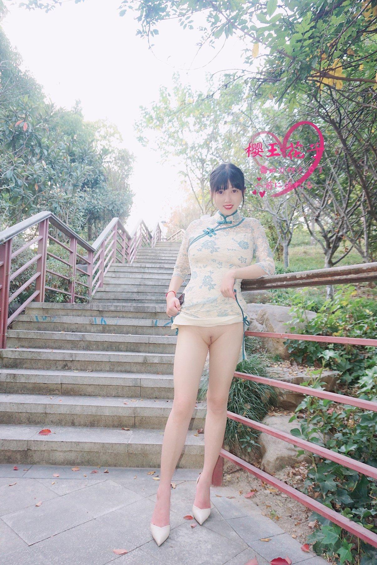 国模套图 极品素人【樱玉花子】深秋小山公园旗袍外拍露出